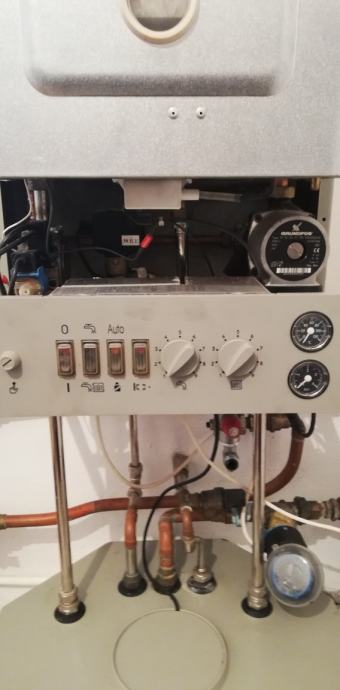 Prodajem navedeni fasadni bojler 24 KW kompletan za dijelove. Neispravna mala ploča sa slike, velika matična ploča je ispravna, neispravan ventilator koji se nalazi na ispušnih cijevi. Uz bojler dajem novi sigurnosni ventil koji se nalazi iznad pumpe. Grundfos pumpa ispravna kao i dr. dijelovi.
