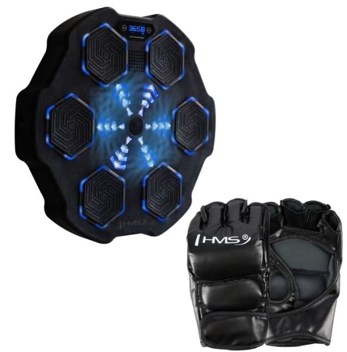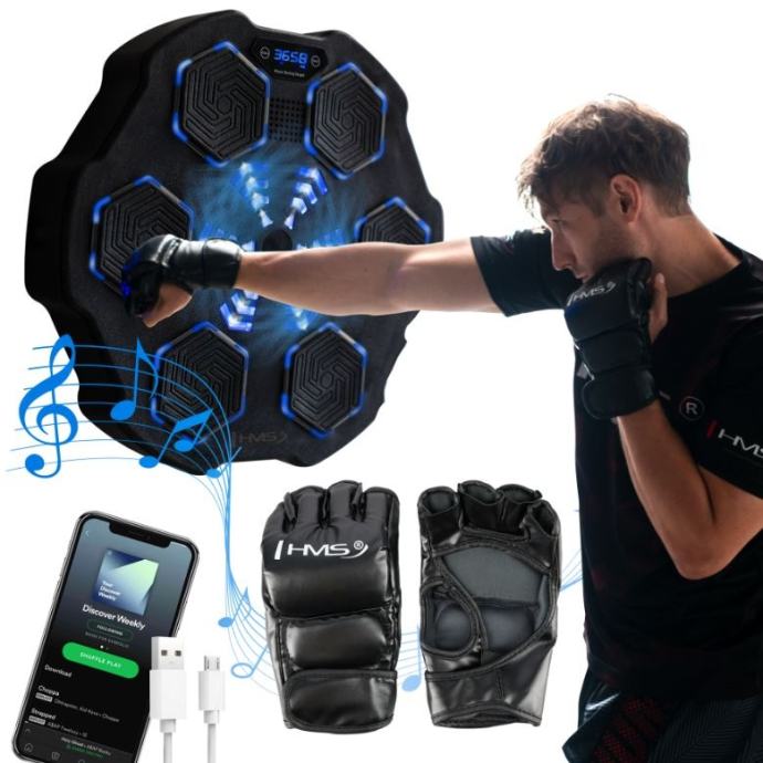 Elektronska boksačka meta nudi priliku za zabavu i razvoj boksačkih vještina. Uređaj je opremljen funkcijom dinamičkog pozadinskog osvjetljenja koja aktivno određuje jedno od šest polja koje korisnik mora pogoditi. Svjetla na brojčaniku svijetle na različitim mjestima i u različitim sekvencama, tjerajući korisnika na brzu reakciju i točan udarac. Ova funkcionalnost ne samo da povećava predanost i intenzitet vježbe, već vam također omogućuje razvoj koordinacije oko-ruka i brzine reakcije.Među devet ponuđenih programa svatko će pronaći nešto za sebe – od početnika do naprednih korisnika. Što je viši program, to brže moramo doći do označenih polja.Električni boksački fokuser opremljen je Bluetoothom i zvučnikom koji omogućuje reprodukciju glazbe s telefona, što svaki trening čini motivirajućim. Digitalni zaslon prikazuje broj uspješnih udaraca, potrošene kalorije i trajanje treninga, tako da možete pratiti svoj napredak u stvarnom vremenu.Puni se putem priloženog USB-C kabelaDobivate i rukavice od 12 ozUređaj se mora pričvrstiti na čvrsti zid pomoću vijaka ili čičak trakeVeličina brojčanika: 45 x 41 x 7,5 cmVeličina udarnog polja: 9 x 11 cmBroj programa: 9Prikaz: točni udarci, potrošene kalorije, vrijeme treningaBluetooth: daZvučnik: daMaterijal: PU + PETežina: 1,75 kg
