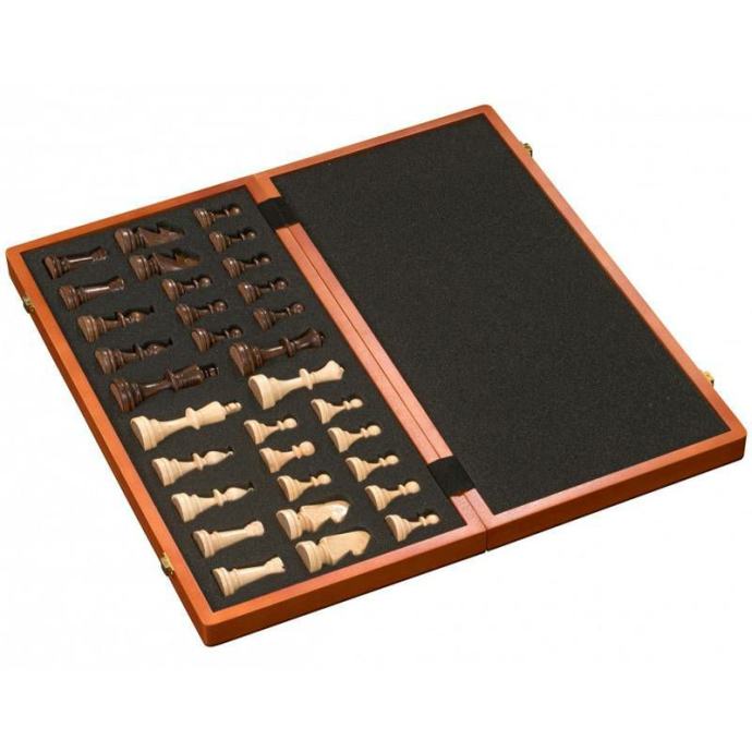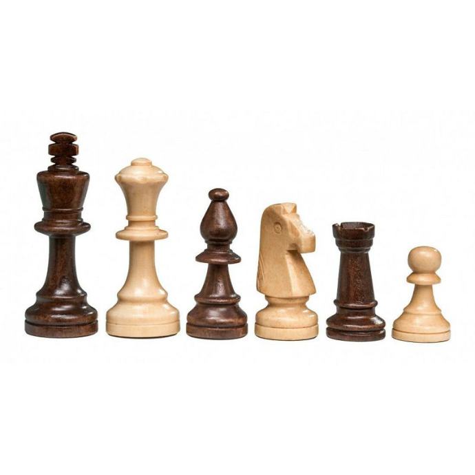Drveni šah. Figure dizajn Staunton, drvo u smeđoj boji, podstavljena baza, dodatno otežane, visina kralja 90 mm.