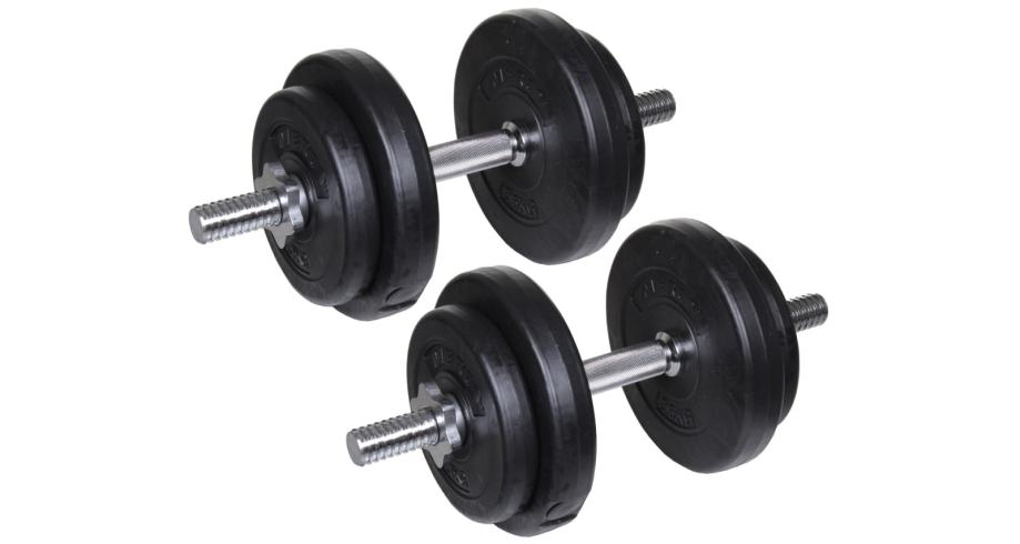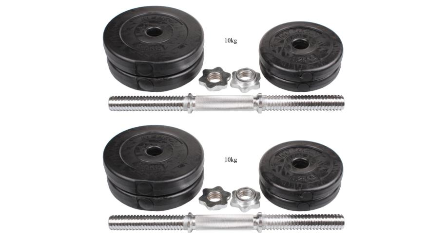 Set Merco podesivih bučica 2 x 10 kg čine dvije osi od čelika (2 x 2,5 kg) dimenzija 30 x 450 mm, matice i plastični diskovi (4 x 1,25 kg + 4 x 2,5 kg) ispunjeni cementom. Merco podesive bučice 2 x 10 kg omiljene su kod svih bodybuildera.