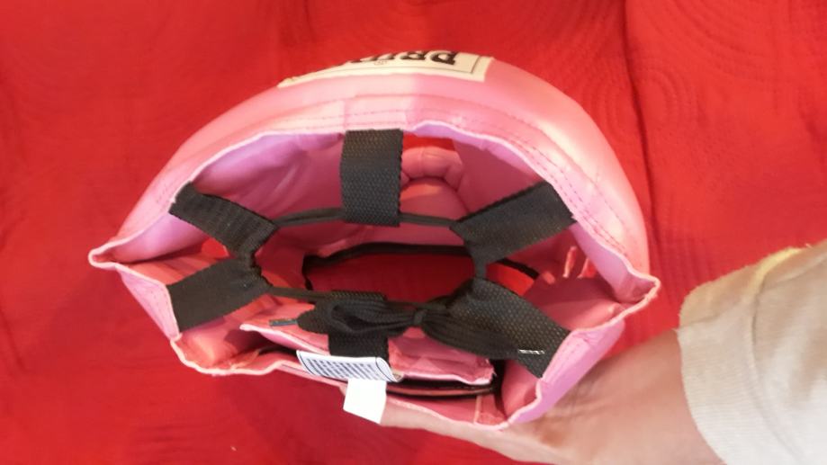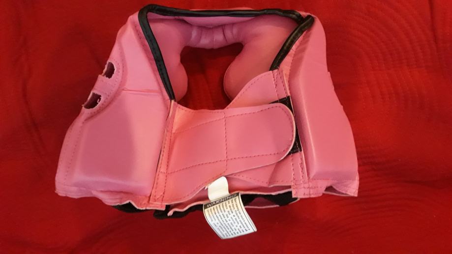 Prodajem kacigu u rozoj boji veličine M. Kaciga je od umjetne kože, s pojačanjem na bradi i može se podešavati.