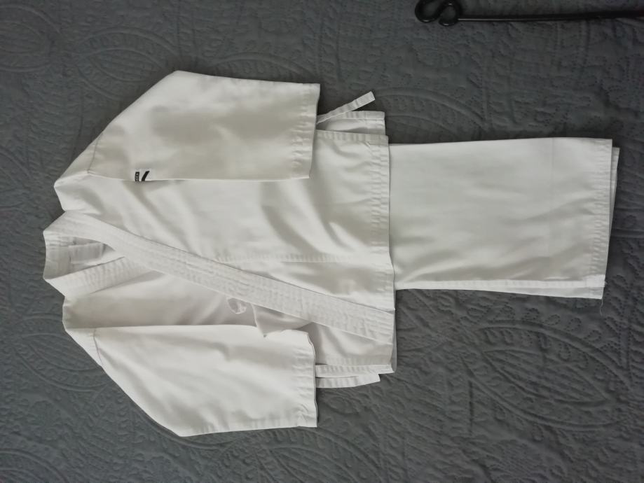 U vrlo dobrom stanju, očuvan, dječji kimono za karate. Veličina 120cm. Za dijete od 4 ili 5 godina. Dodatno gratis idu papučice veličina broj 32