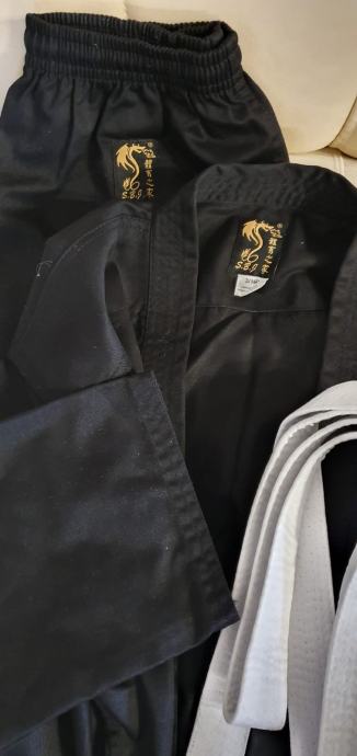 Kimono crne boje-NOVO,jedanput obuceno,velicine 160 sa 2 bijela pojas,100 posto pamuk!Cijena je 35Eura fiksno!Zvati na 0913988988