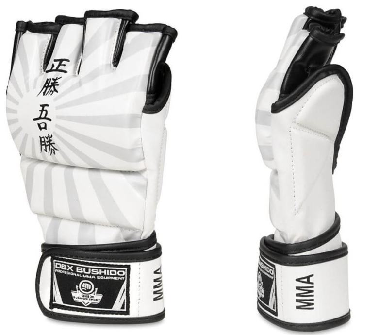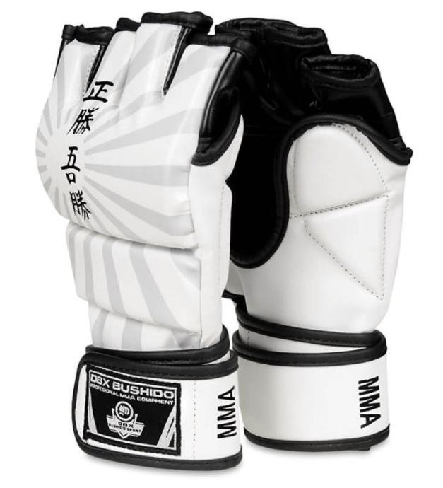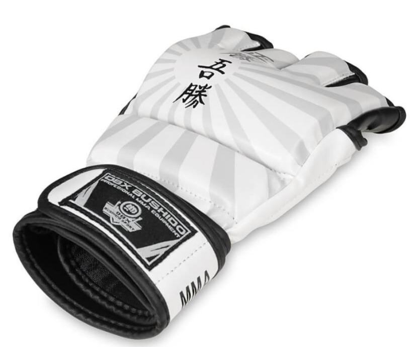 Ovaj model MMA grappling rukavica je moguće koristiti za MMA (mix martial arts) treninge, ili za vježbanje na vreći, fokuseru ili refleksnoj lopti. Rukavice su proizvedene ojačanom sintetičnom kožom i garantiraju idelano venitiliranje i fleksibilnost. Unutarnjost rukavice je prekrivena mekanim materijalom, što spriječava abraziju kože tijekom intenzivnog treniranja. Fiksiraju se širokom velcro trakom za pravilno držanje šake. Pjenasti umeci pružaju dodatnu zaštitu.Veličina: L, MMaterijal: sintetična koža - ojačanaPunjenje: pjenaBoja: bijela "Japan"