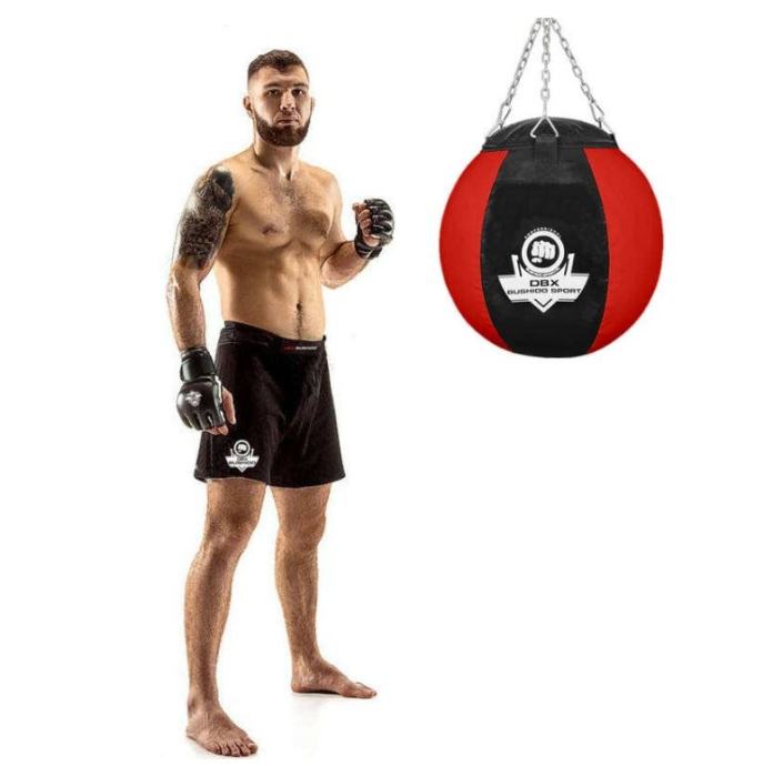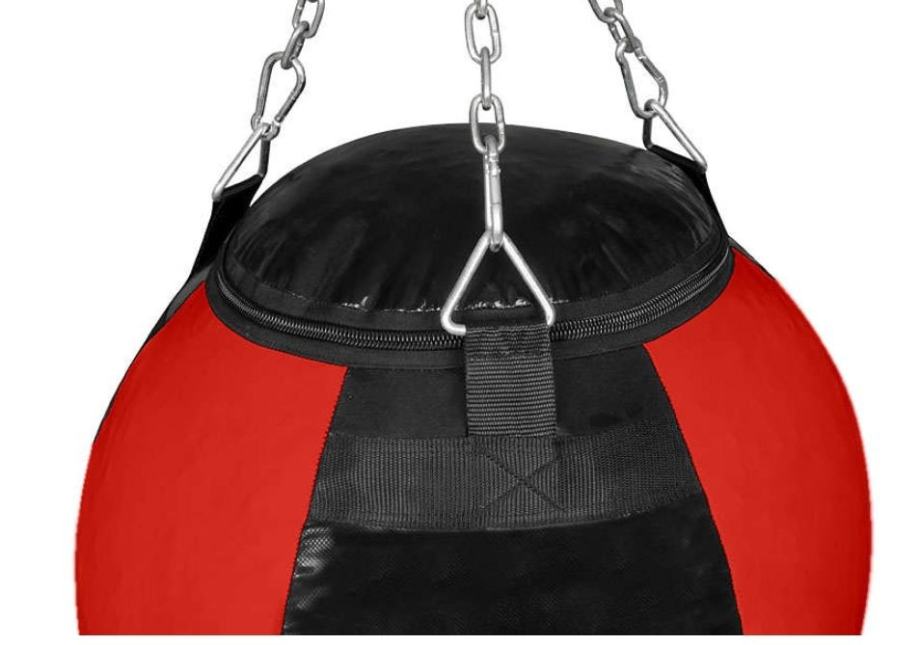 Boksačka vreća okruglog oblika savršena je za uvježbavanje tehnike udaranja rukom. Kruška je punjena mješavinom pjene i gumenih granula, tako da odlično apsorbira silu udarca, težina joj je cca 30 kg. Posebno punjenje također omogućuje elastičnost i ravnomjerno punjenje po cijeloj površini. Torba je izrađena od višeslojnog materijala koji osigurava vrlo visoku otpornost na bilo kakva oštećenja.Promjer: 45 cmVisina: 50 cm, uključujući lanac 96 cmTežina: cca 30 kgLanac je rotirajući i nosi do 200 kg težineMaterijal: materijal otporan na 7 slojevaDodatna vreća protiv njihanja nije uključena (prodaje se zasebno)