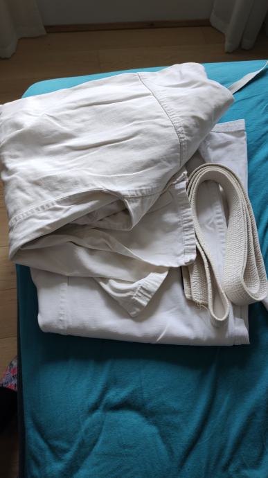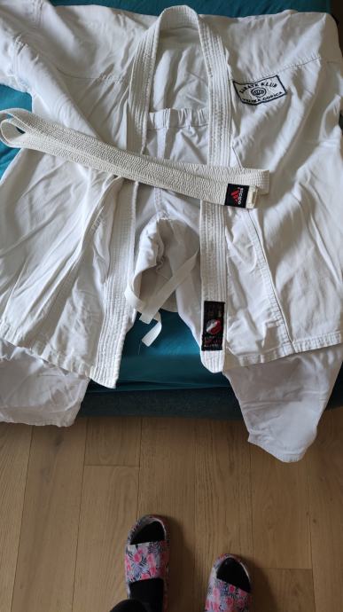 Kimono je stariji i korišteni te ima logo kluba koji bi se mogao odšiti. Ispravan je i može se koristiti još neko vrijeme! Uz njega dolazi i Addidas bijeli pojas.