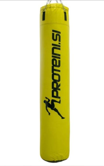 Prodajem Proteini.si vreću za boks dimenzija 180 cm, promjera 35cm, od bisonyla, s četiri lanca dužine 30cm težine 53 kg