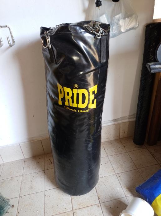 Pride vreća, napunjena, 120 cm, sa lancima i stropnim nosačem. Vrlo malo korištena, u odličnom stanju.
