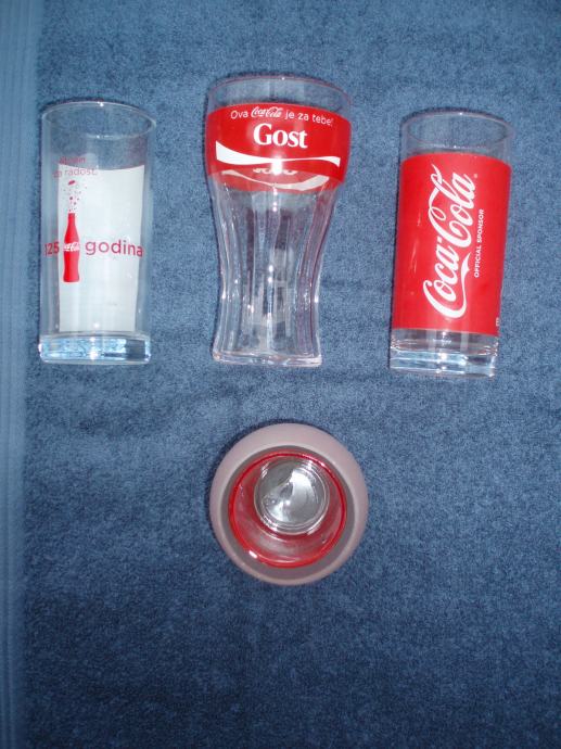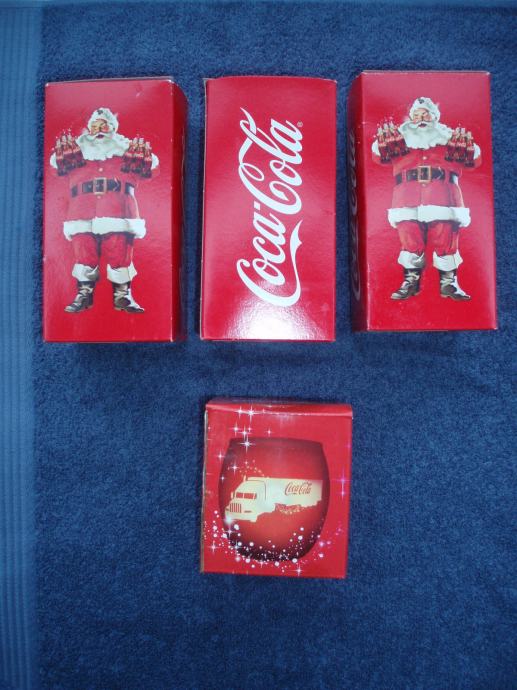 3 čaše od Coca Cole u ambalaži , retro dizaj i jedan svjećnjak u ambalaži, sve novo