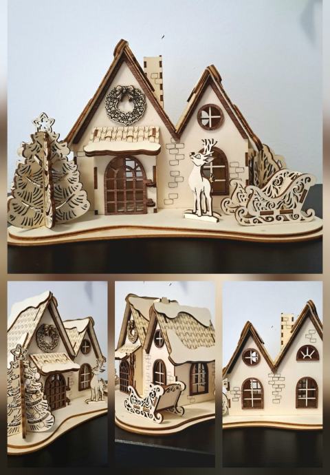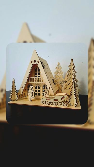 Drvena božićna kućica, izrađene s puno truda i pažnje.