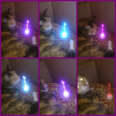 Radi na principu izmjene boja, pa onda malo uspori, pa opet blink izmjenične boje, pa uspori...