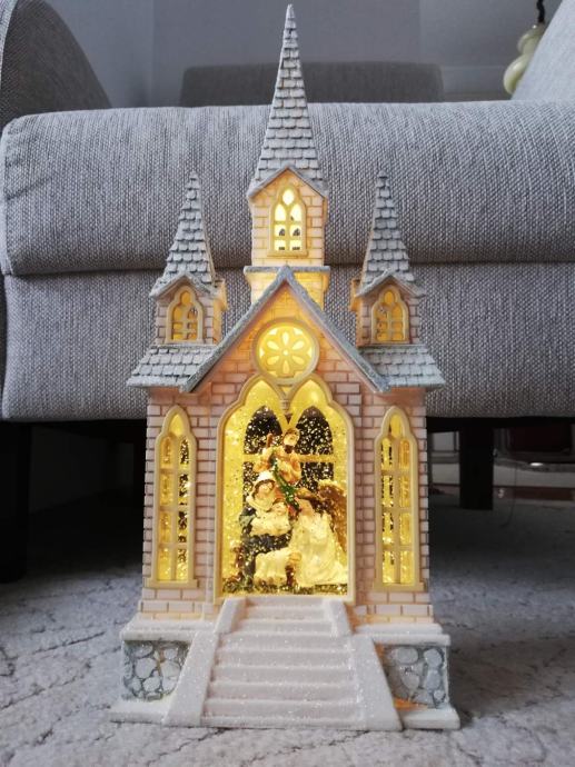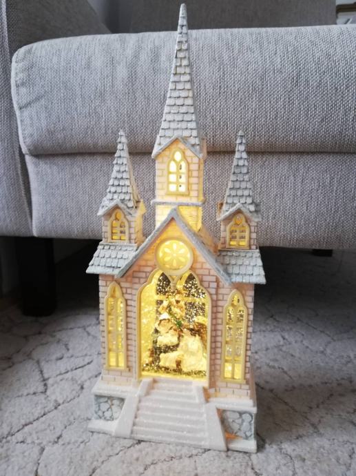 Muzička dekoracija, crkva koja svijetli, velika 41x17x10 cm - NOVO