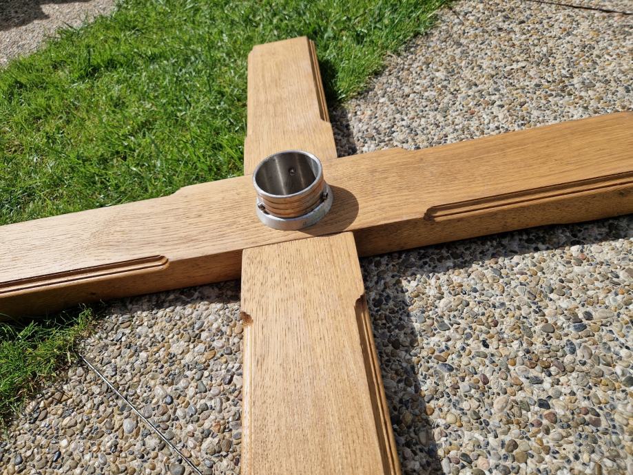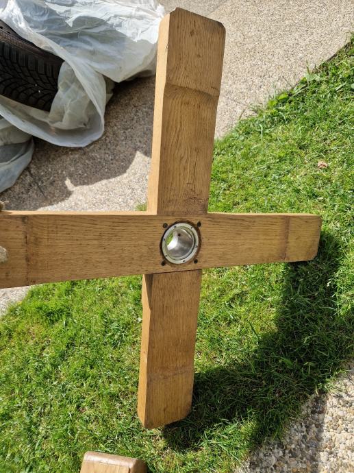Masivni hrastov stalak, ručni rad, krakovi cca 30cm, rupa za bor fi 5,5cm.
