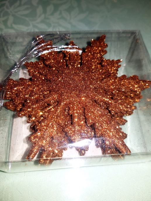 Prodajem smeđe ukrase za bor u obliku pahuljica - dostupno odmah.