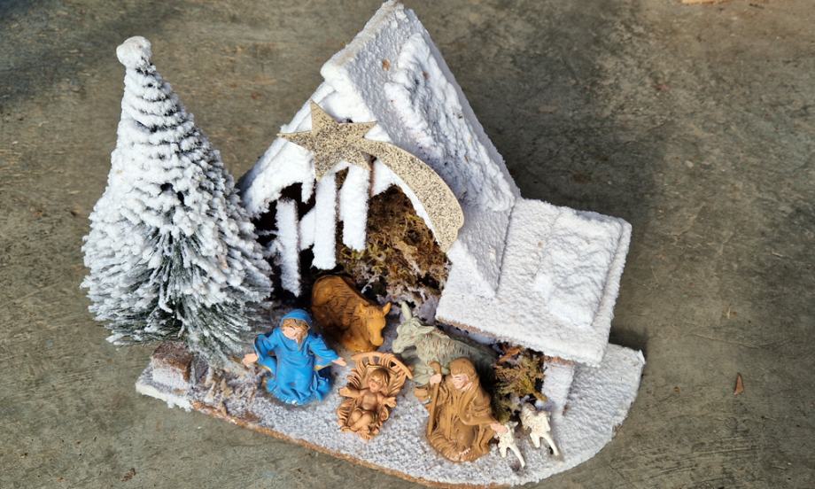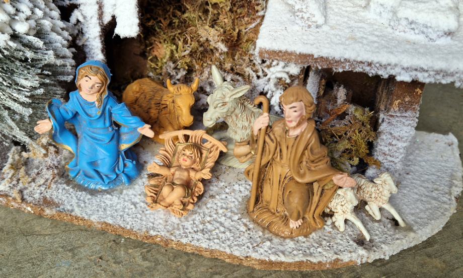 Božićne jasle za dekoraciju drvene sa plastičnim figuricama
