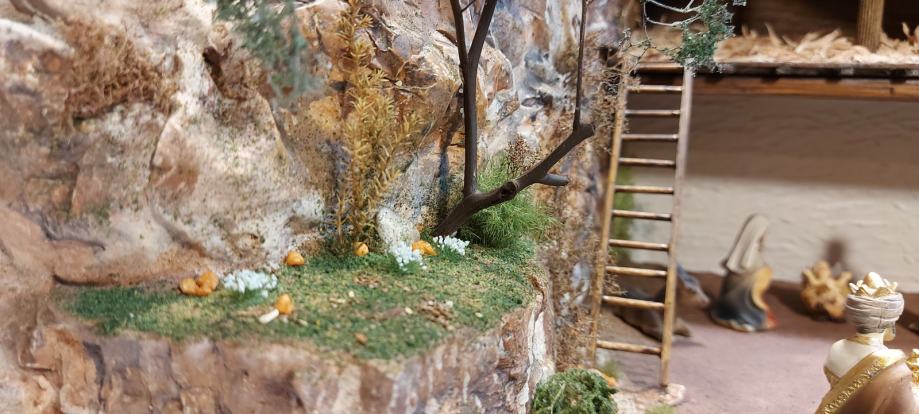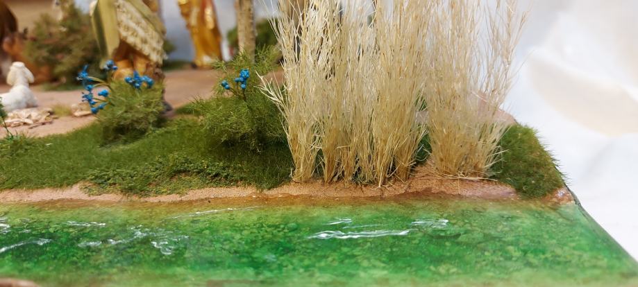 Prirodni materijali se na poseban način konzerviraju i miješaju sa otopinom za dugotrajan prirodan izgled.Posjetite stranicu "diorama presepe" i sve će vam biti puno jasnije,krajnji izgled ovakvih jaslica diže ovakav konačan proizvod na jednu višu razinu.Svaka slika govori tisuću riječi.