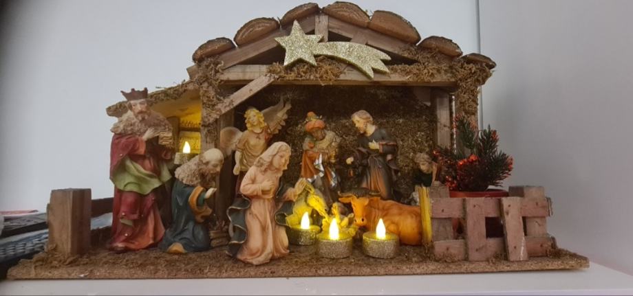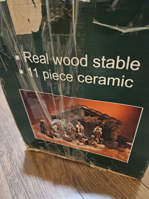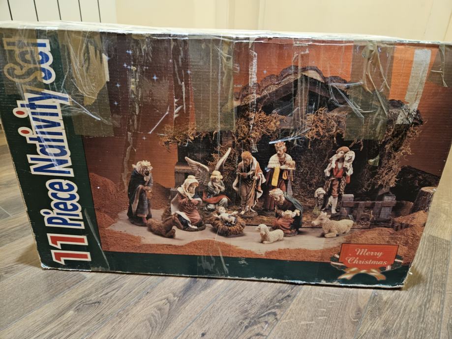 Prodajem božićne jaslice sa 11 elemenata .Figurice i drvena štalica . Visina figurica 10-20 cm.