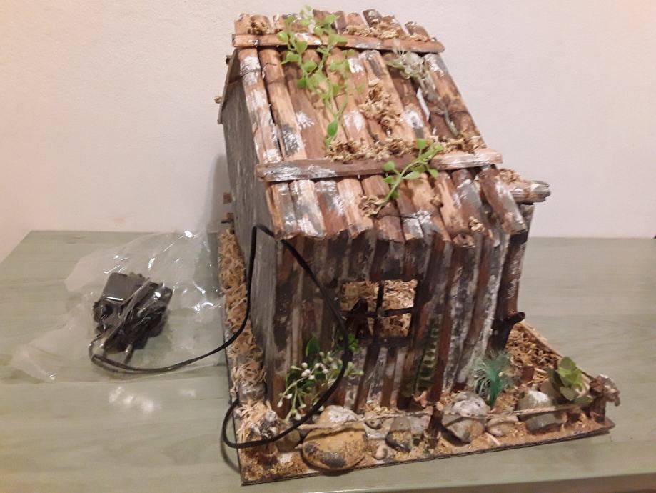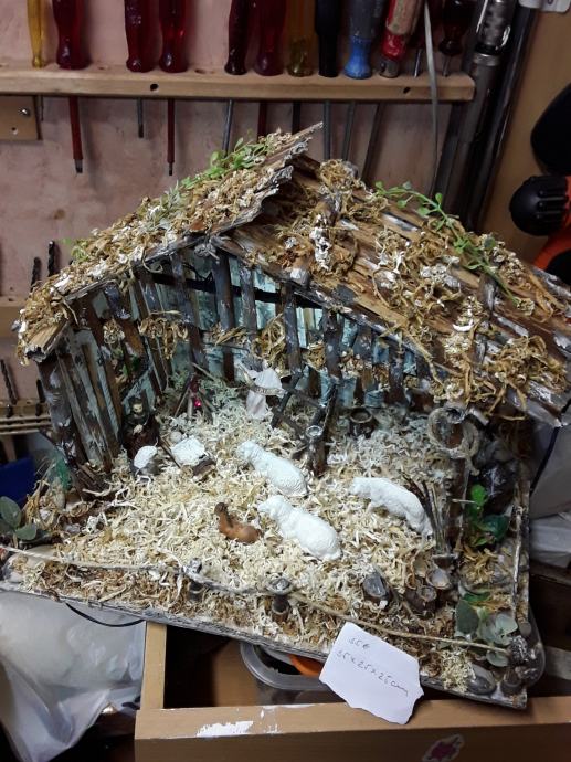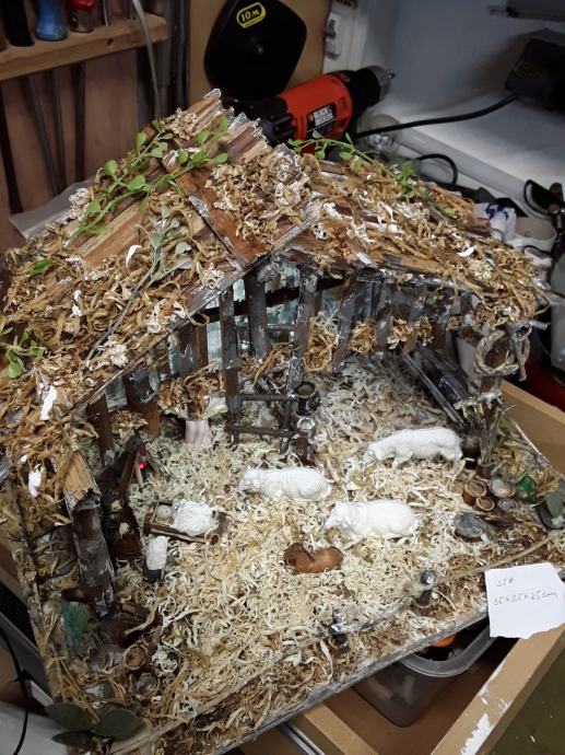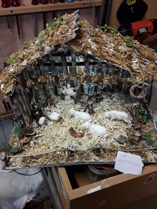 Jaslice sa figuricama, izrađene od kartona i trske, eko boje. Ugrađena led rasvjeta, napajanje preko adaptera 5V.