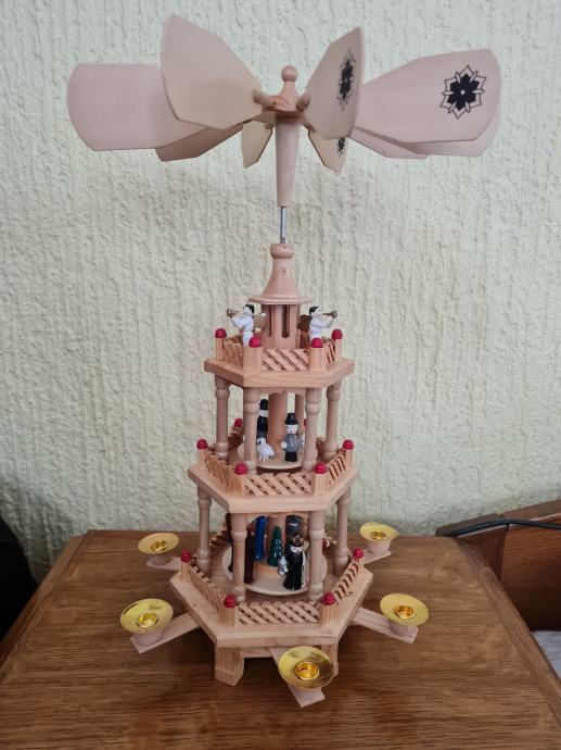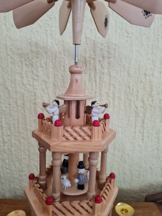 kada se upale svijeće vrti se kompletna figura , (anđeli , betlehem i pastiri), sva tri elementa