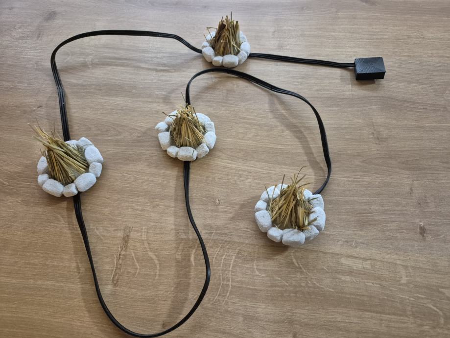 Razmak između vatrica je cca 30cm, a napajaju se putem USB-C kabela i punjača od minimalno 1A