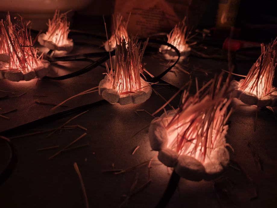 Svaki komad sadrži LEDicu koja treperi u nijansama narančaste boje imitirajući pravi plamen
