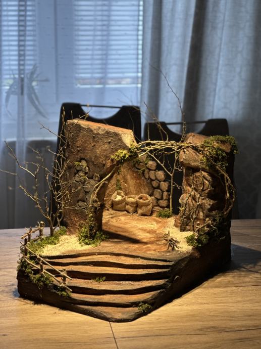 Prodajem posebne božićne jaslice izrađene kod kuće. Uloženo je izuzetno puno truda te je detaljno paženo na svaki detalj. Korišteno je mnoštvo prirodnih materijala.