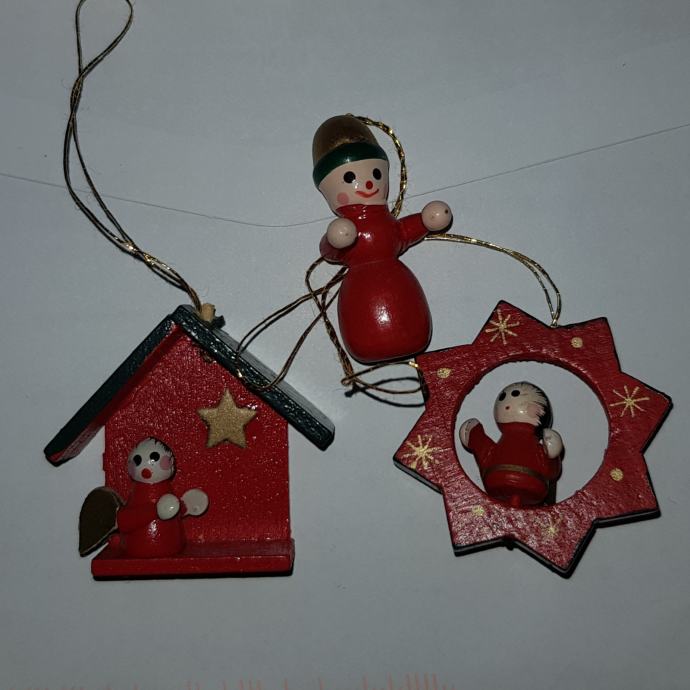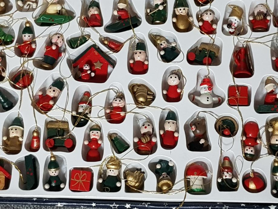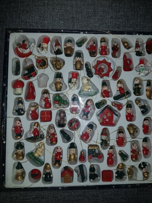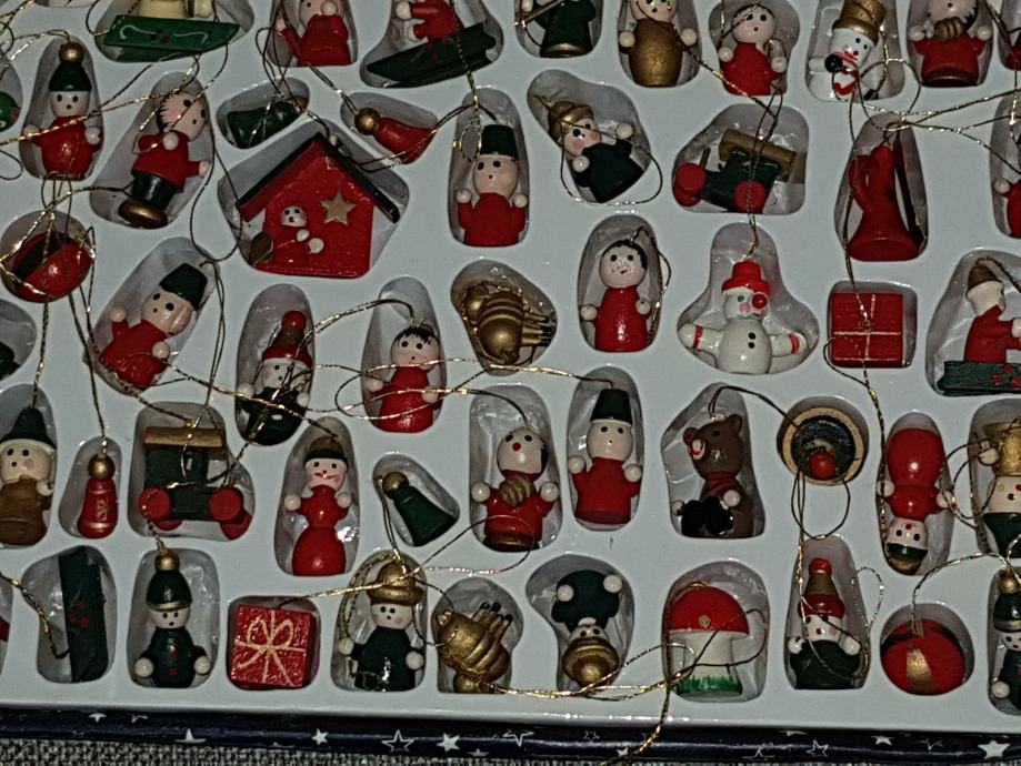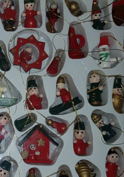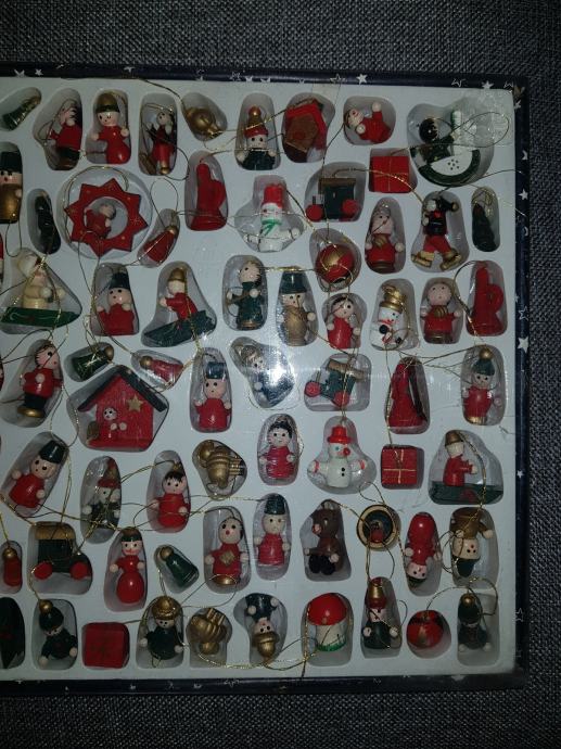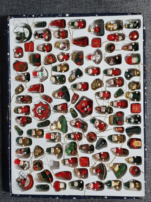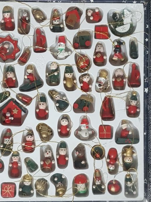 99 kom malih drvenih ukrasa za bor, različitih oblika,