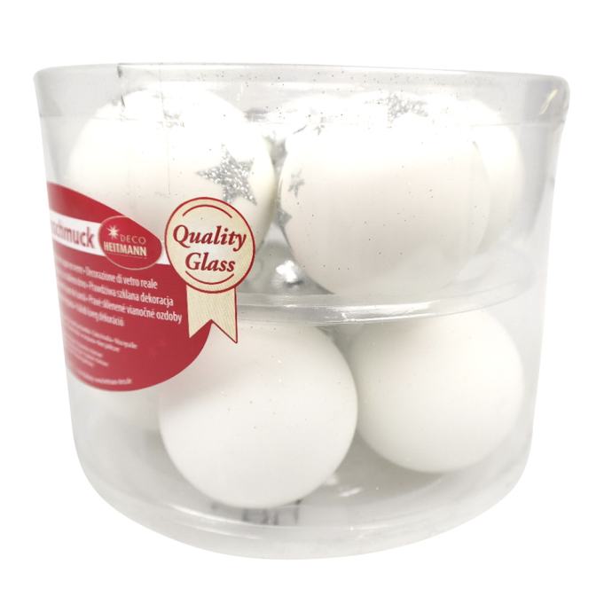 Ovaj set 10 bijelih staklenih kuglica s dekorativnim uzorkom zvijezda savršen je izbor za stvaranje snježnog i bajkovitog ugođaja u vašem domu. Njihova jednostavna, ali sofisticirana estetika učinit će vašu božićnu dekoraciju još ljepšom.