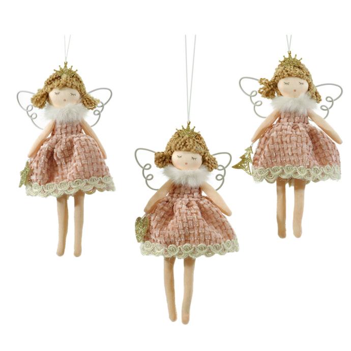 Ova rozo-zlatna anđeoska dekoracija unosi dašak magije i elegancije u vašu blagdansku sezonu.