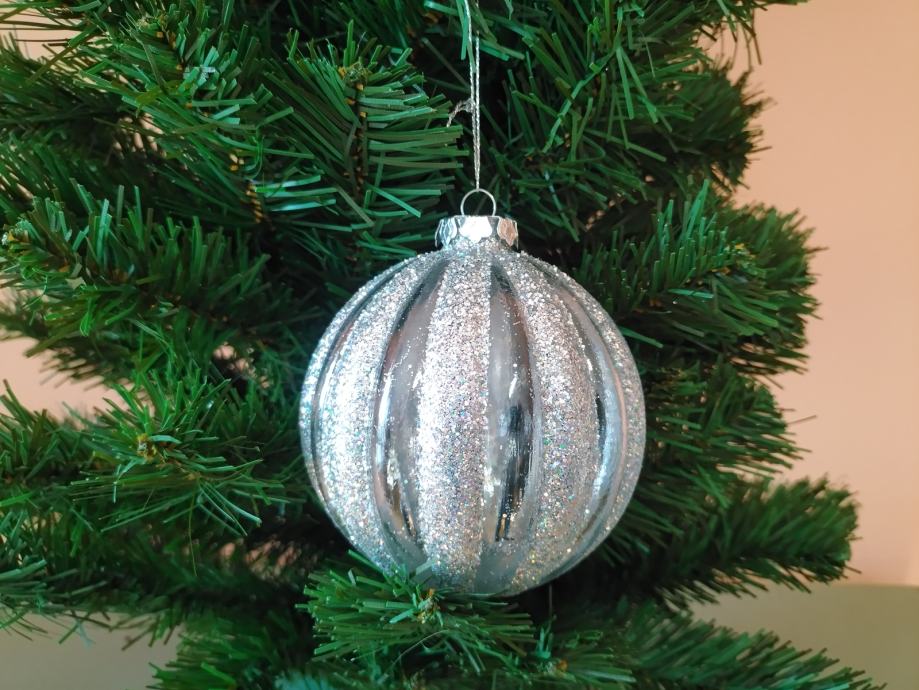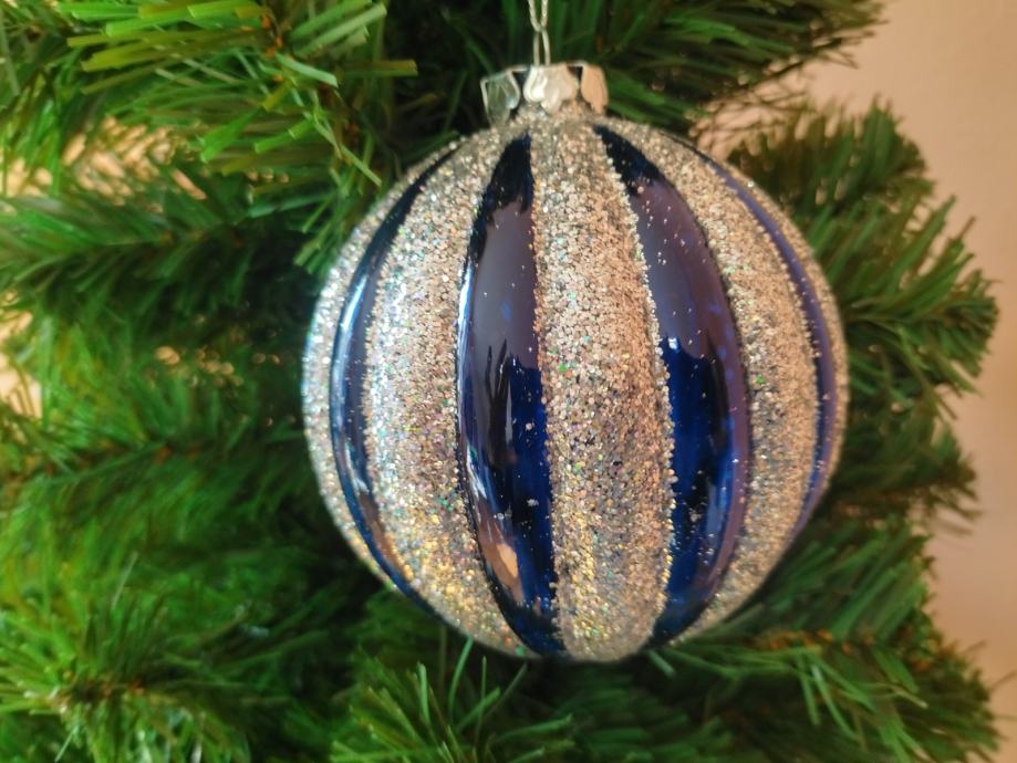 Kuglice prozirne glitter i plave glitter 10cm- 1,50€/kom