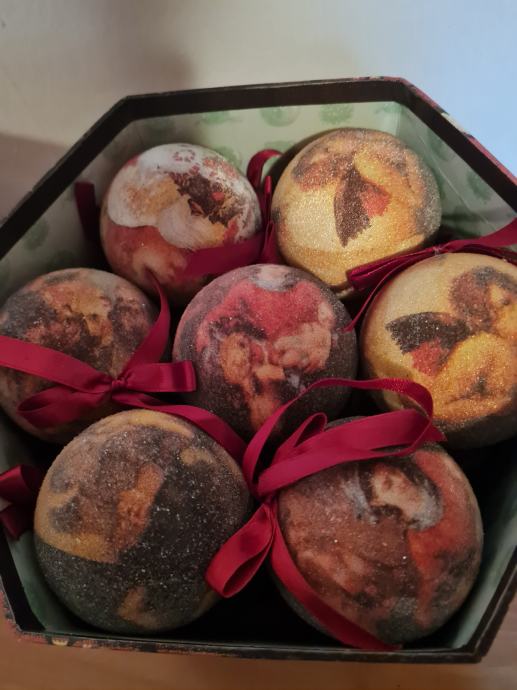 Dvije kutije sa kuglicama za bor, u svakoj kutiji po dva reda kuglica, stanje novo, šaljem po dogovoru na teret kupca, prvi kontakt isključivo na poziv