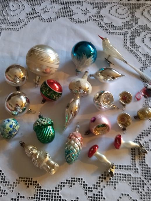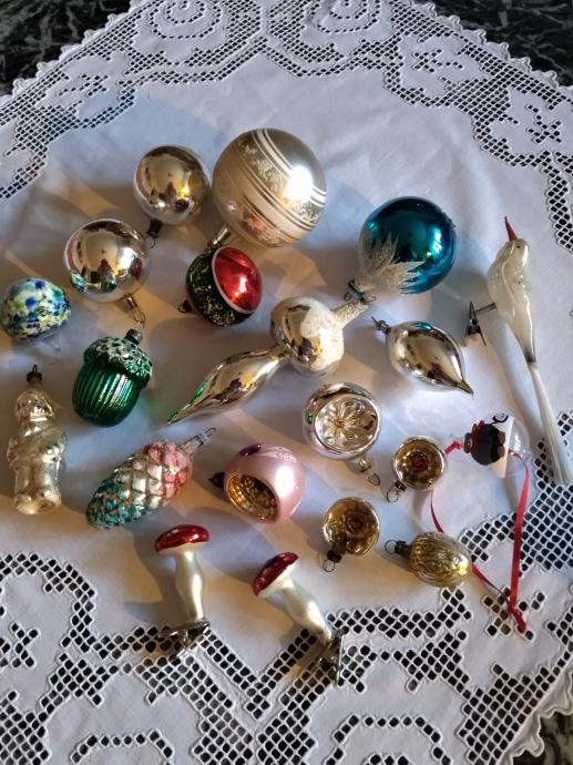 Stare staklene kuglice za bor prodajem samo u lotu. Navedena cijena odnosi se na sve na fotografijama.