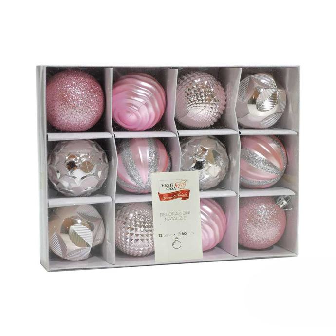 Set božićnih kugli za bor, set od 12 komada, u roza boji, s promjerom od 6 cm i različitim dizajnima su raznolik ukras za božićno drvce.