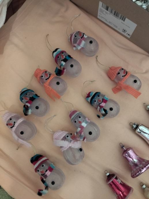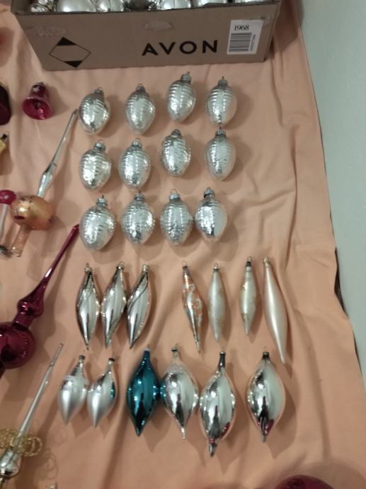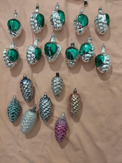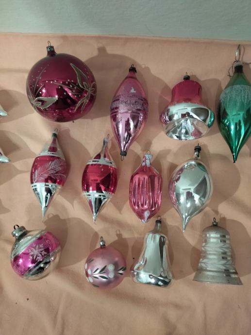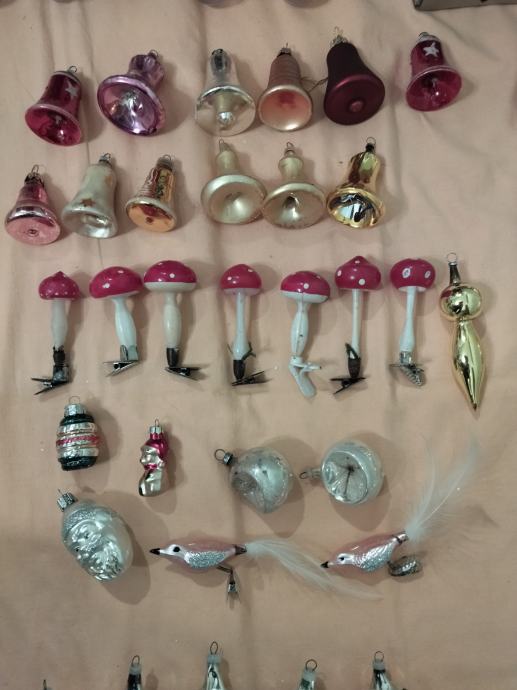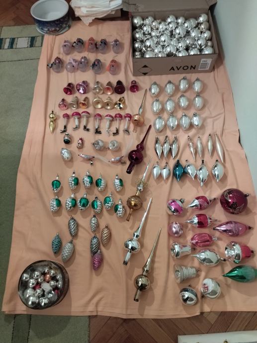 Veliki izbor starih staklenih ukrasa za bor.