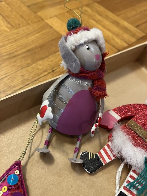 5 metalnih ukrasa, 2 izradjena od drveta i 2 od tekstila.