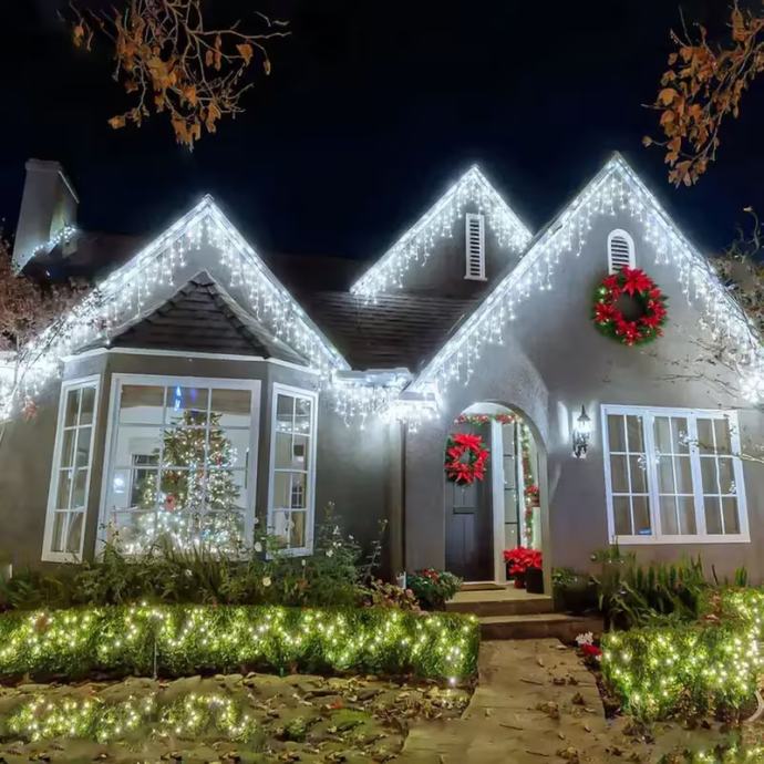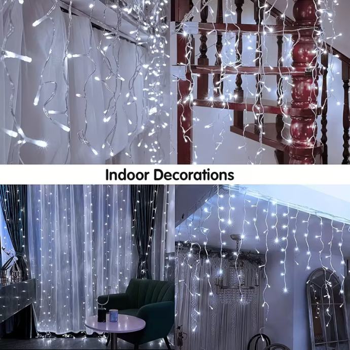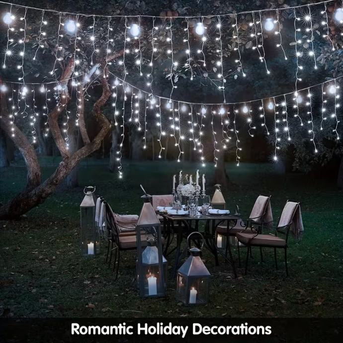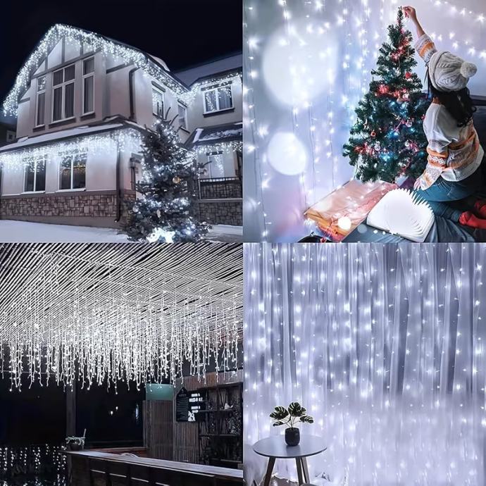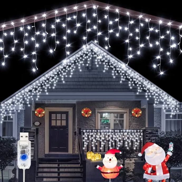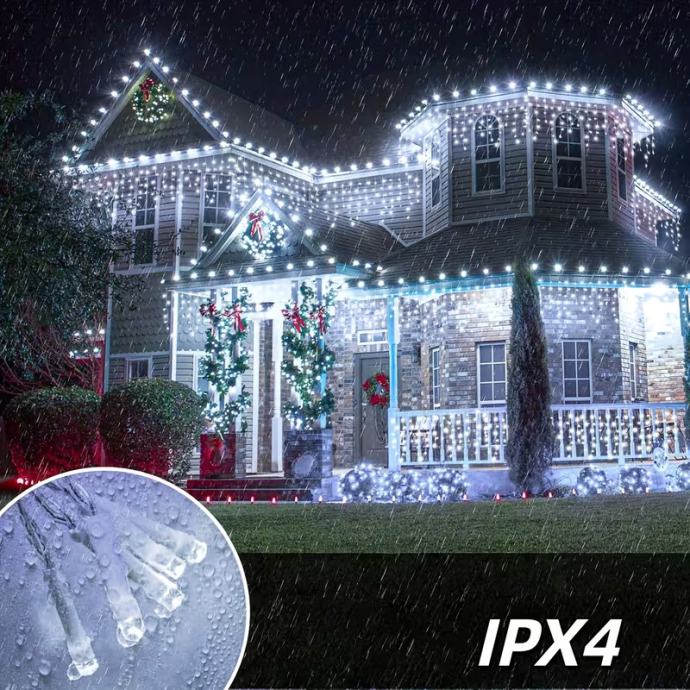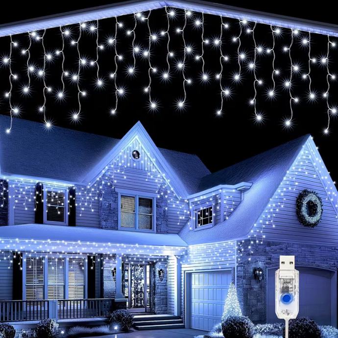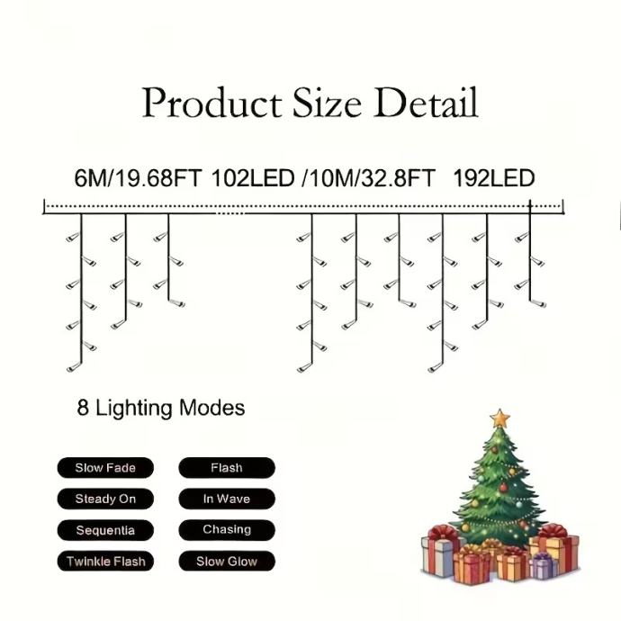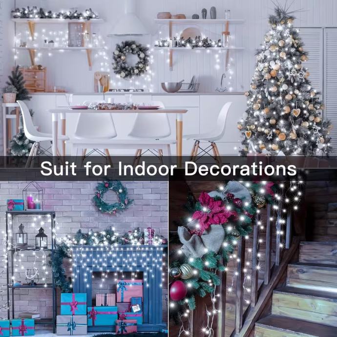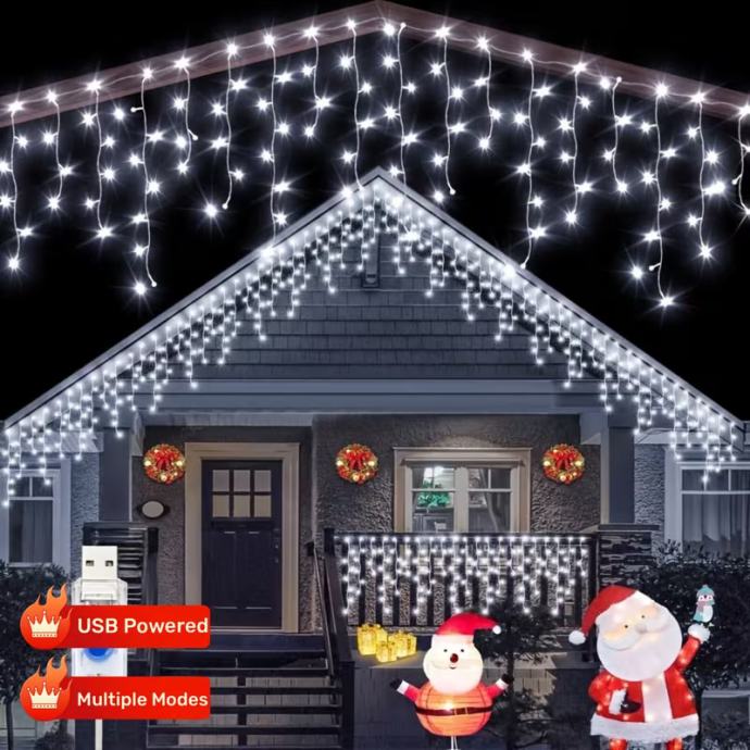 102-LED svjetlosni niz u obliku ledenice s (nije prikazano) - USB napajanjem - trepćućim božićnim svjetlima, 8 načina osvjetljenja, - učinkovita unutarnja/vanjska svjetla za Božić, Noć vještica, vjenčanja, zabave (bijela)