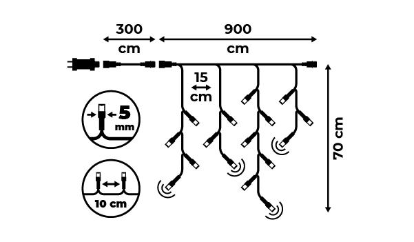 Ovaj model LED Siga lampica ima trepereći efekt gdje jedna LED lampica u svakom pojedinom visećem svjetlosnom nizu treperi.