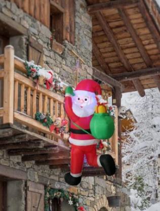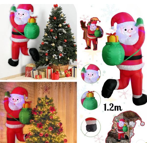 Dodajte magiju svojoj blagdanskoj dekoraciji s Djed Božićnjak na napuhavanje s vrećom! Visine od 120 cm, ovaj ukras je savršen za postavljanje u dvorištu, na terasi ili unutar vašeg doma, donoseći svima radost Božića. Djed Mraz odiše blagdanskim duhom, savršenim za privlačenje pogleda prolaznika i stvaranje veselog ugođaja.