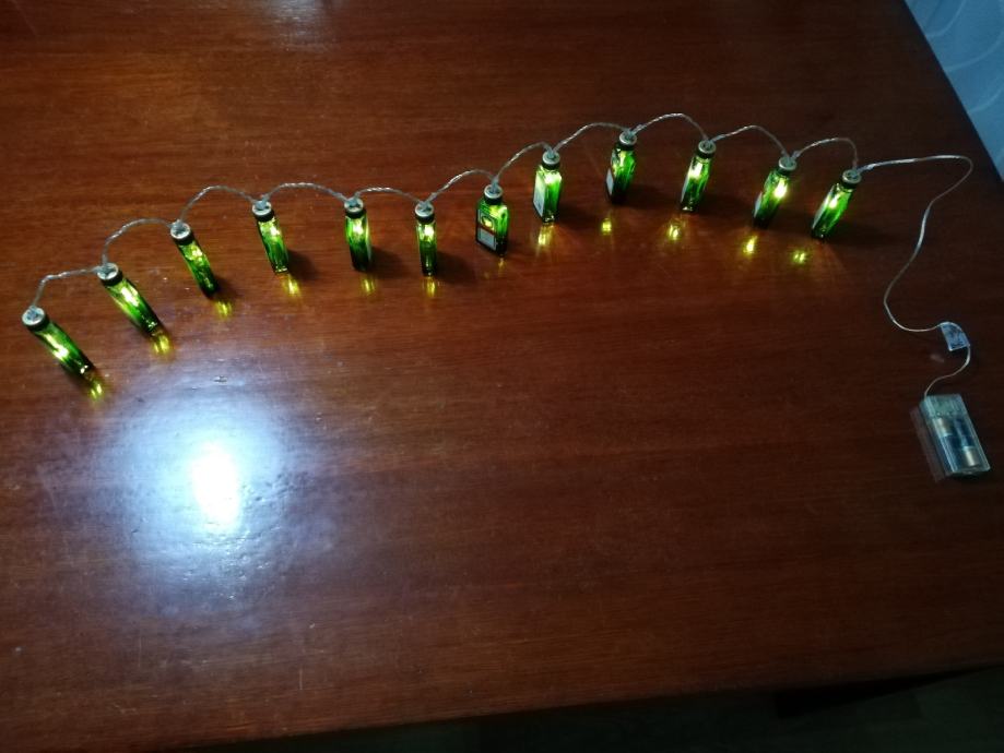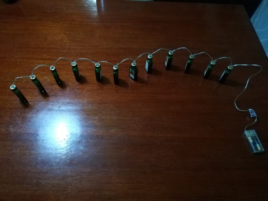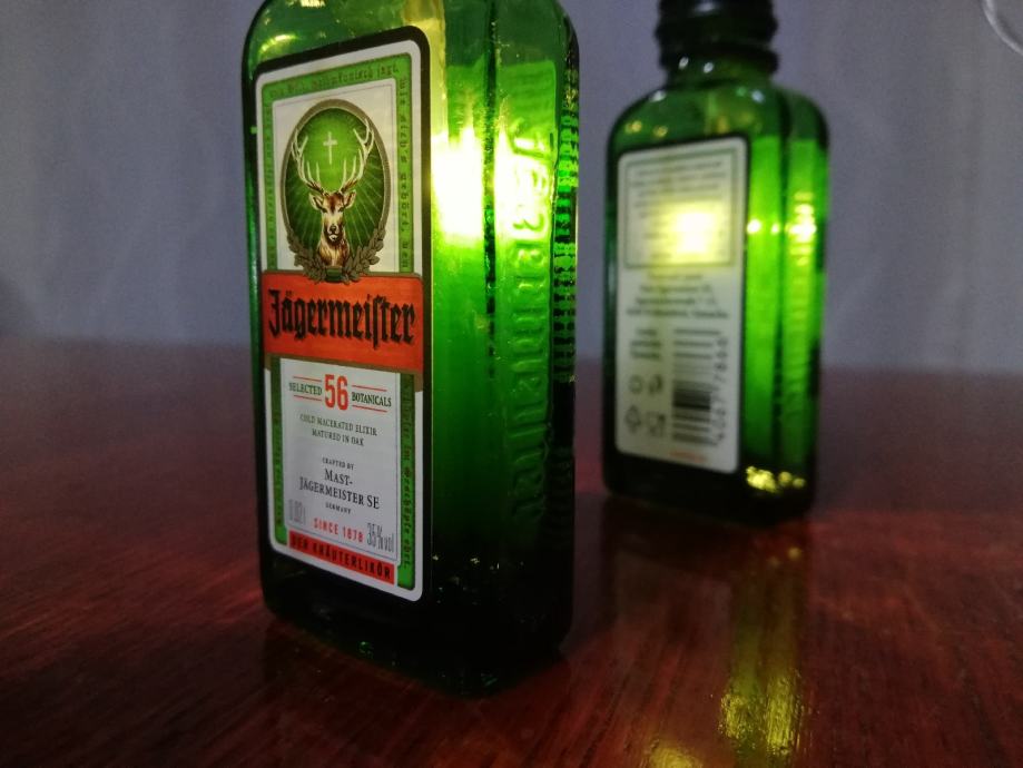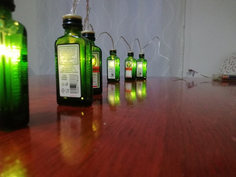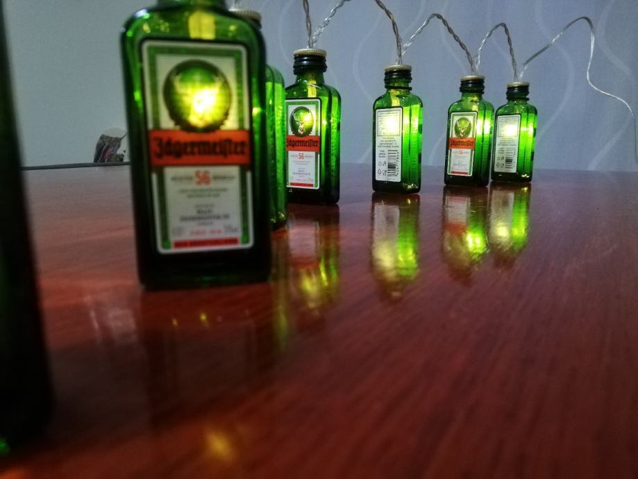 12 komada led žaruljica, svaka u maloj bočici Jagermeistera.