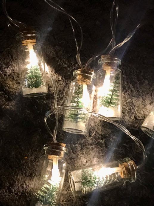 Nove lampice - vise malih tegli sa borićem i lampicom u svakoj teglici - zanimljivo i slatko
