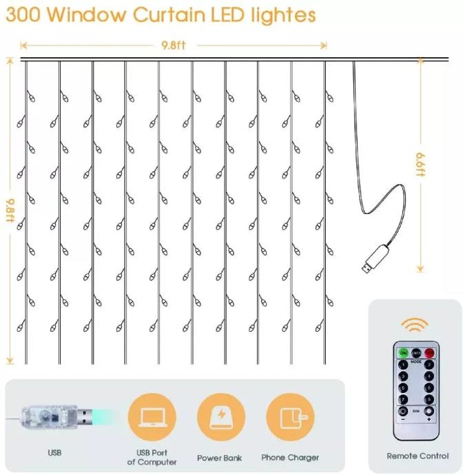LED lampice za zavjesu,dimenzija 3x3m. 300 LED lampica. Bijela boja.