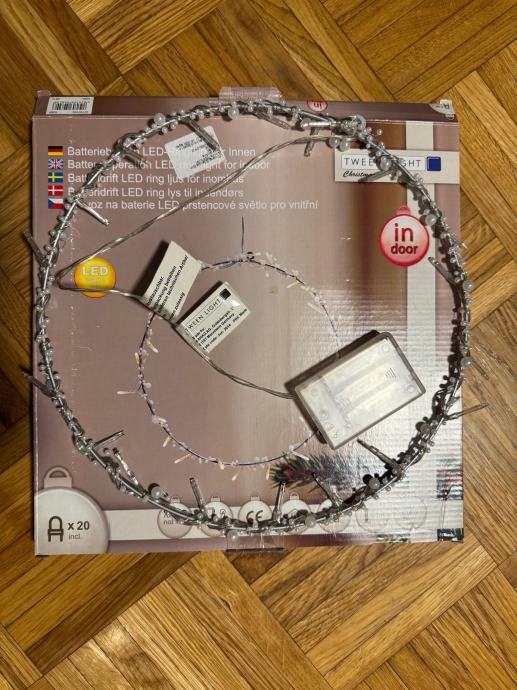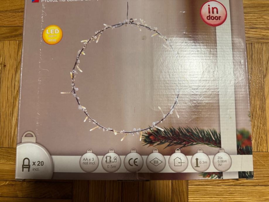 Božićni LED vijenac, 20 lampica, promjer 30 cm, toplo bijela. Potrebne su 3x AA baterije.