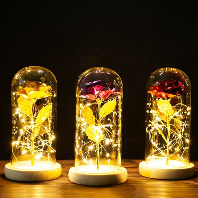 LED vječna ruža sa svjetlima u kupoli za uređenje doma, poklon, dar