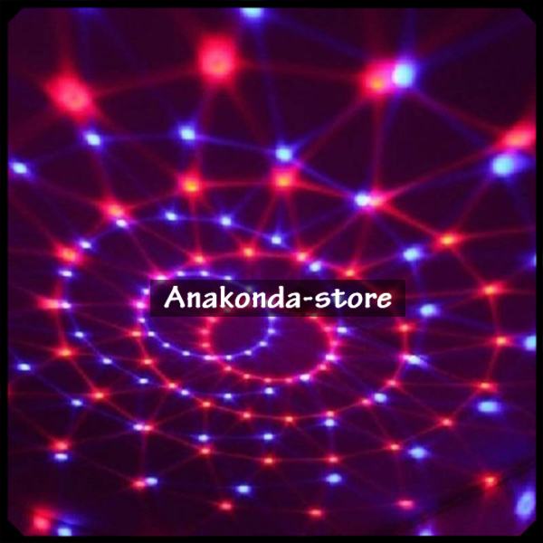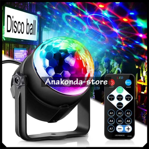 Nova magična kristalna disko kugla osjetljiva na glazbu sa svjetlosnim efektima kao na slici. Svijetli u 3 različitih boja ( crvena , plava , zelena ) samo uključi u struju i radi. Kugla ima motor koji se vrti tako da zrake putuju po cijeloj prostoriji slično kao zrake laser projektor