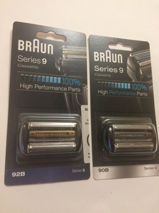 Braun 92B mrežica s noževima je za Braunovu seriju 9 za modele: 9030cc, 9050cc, 9070cc, 9075cc, 9090cc (crne boje), a Braun 92S mrežica s noževima je za Braun modele: 9240s, 9260s i 9290cc srebrne boje.