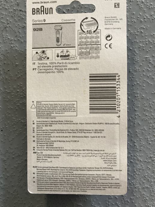 Prodajem novu zapakiranu komplet pakiranje Braun 92B (mrežicu s noževima) za Braun brijaće aparate series 9!