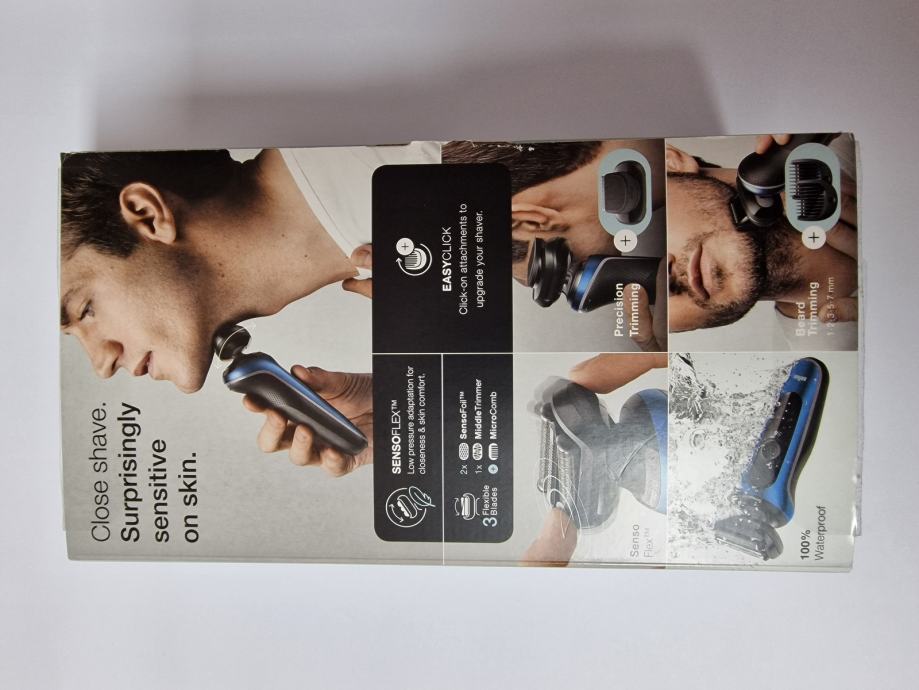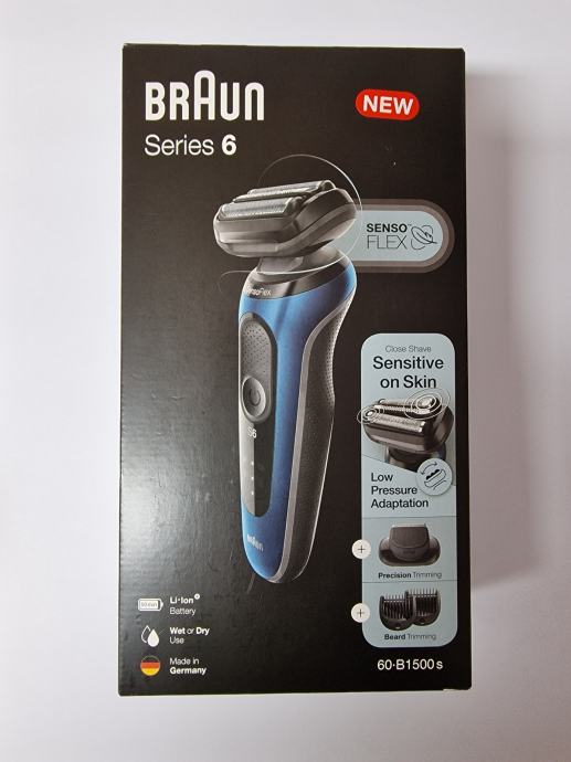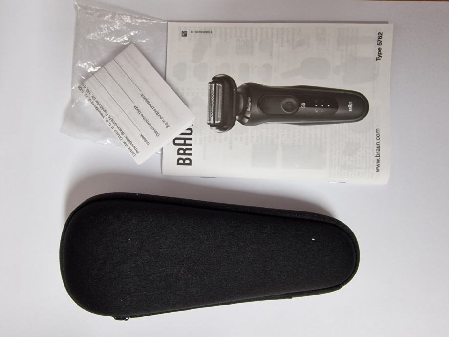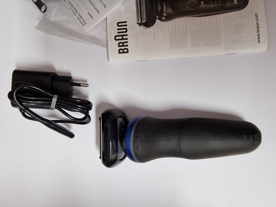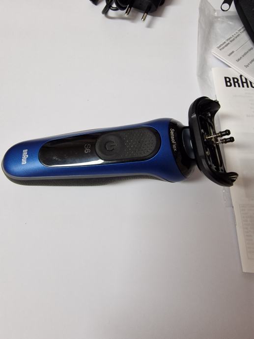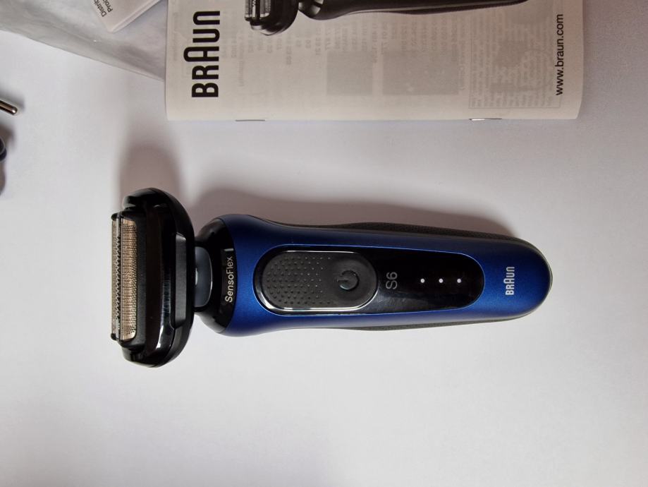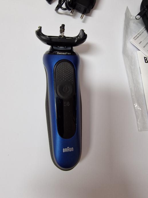 Brijaći aparat Braun S6 Sensoflex, kutija, upute, nastavci za brijanje, zaštitna futrola za nošenje, punjač.