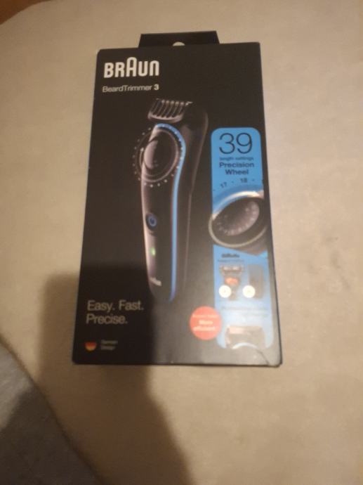Prodajem novi Braun BeardTrimmer 3 trimer za bradu. Dolazi s 39 postavki dužine i Precision Wheel kotačićem za precizno podešavanje. Nov, nekorišten.