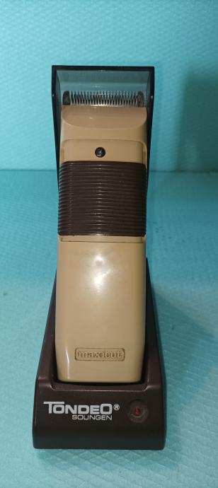 Tondeo mašinica za šišanje,jedna od prvih profesionalnih baterijskih bežičnih koje su proizvedene.Mašinica je dobro očuvana,ispravna i ugrađena je nova baterija.Može se montirati na zid.