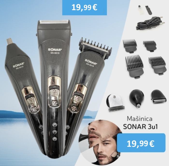 Mašinica za šišanje + Aparat za brijanje + Trimer za nos i uši u jednom, Sonar